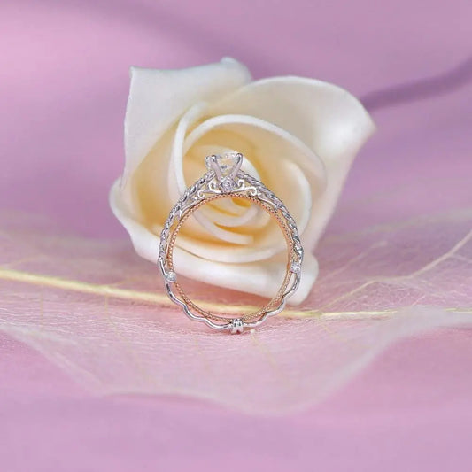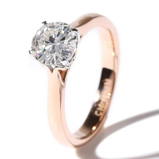14k Rose & White Gold Moissanite Ring 0.5ct Center Stone - Best Customization Jewelry