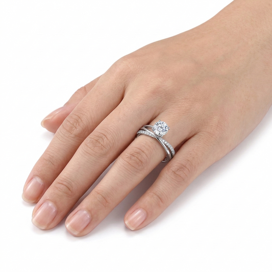 Platinum Plated Silver Unique Moissanite Ring 1ct or 0.5ct