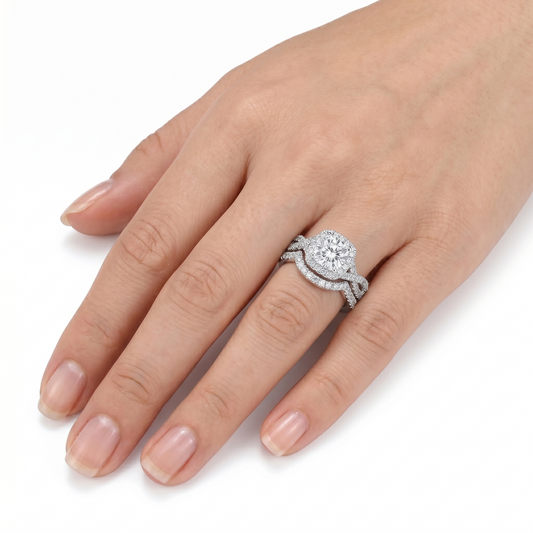 Platinum Plated Silver Moissanite Bridal Set 2 Piece 2.8ct Total