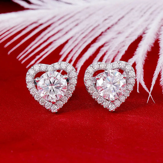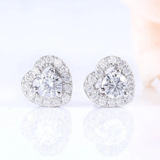 14k White Gold Heart / Halo Stud Moissanite Best Earrings for Women 2ctw