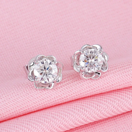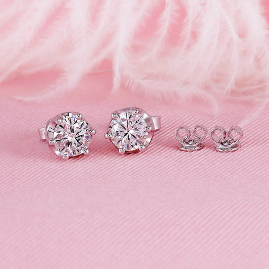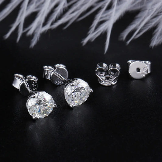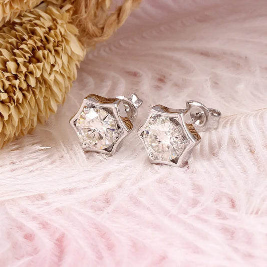 10k White Gold & Platinum Plated Silver Stud Moissanite Earrings 2ctw - Affordable Earrings Collection