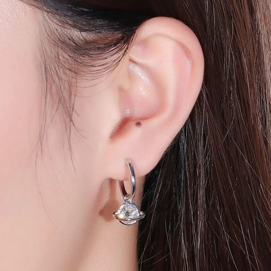 14k White Gold Affordable Hoop Earrings Planet Moissanite 2ctw