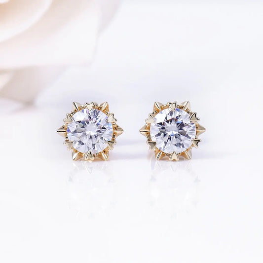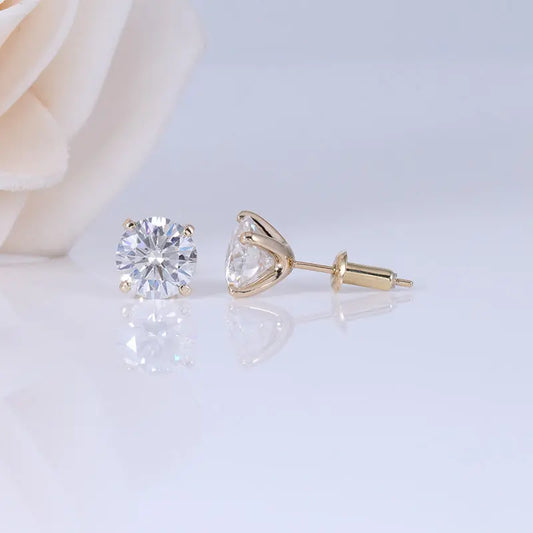 14k Yellow Gold Moissanite Stud Earrings Round 1ctw