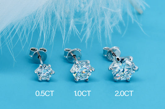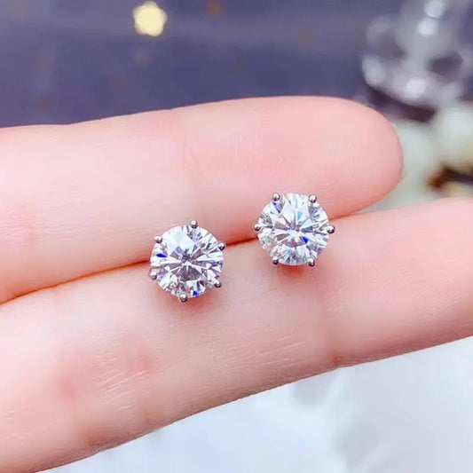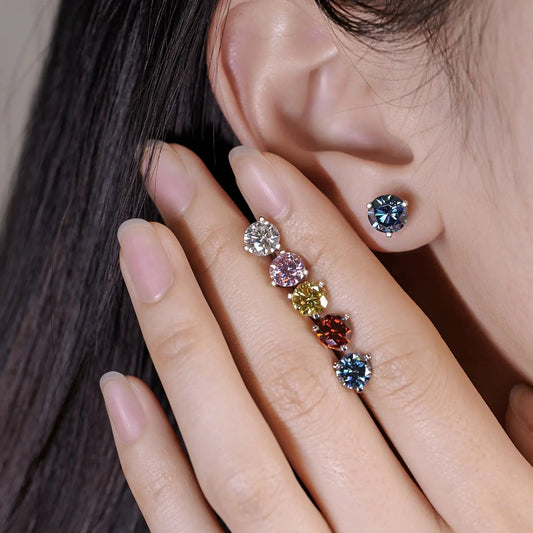 Silver, Rose silver, Yellow silver Moissanite Stud Earrings 1ctw - 2ctw
