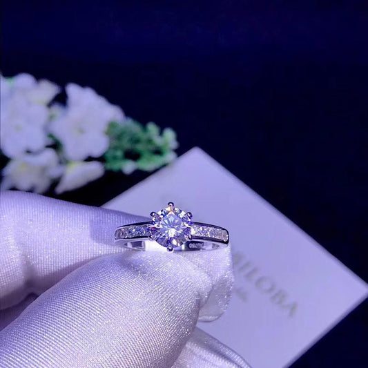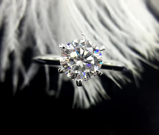 Platinum Plated Silver Moissanite Ring 0.8ct or 1ct