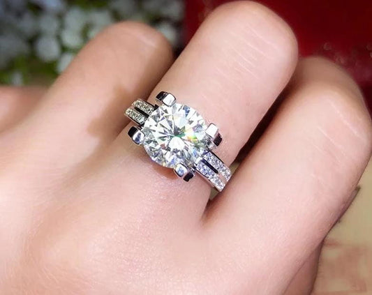 Platinum Plated Silver Moissanite Ring 2ct-3ct Center Stone