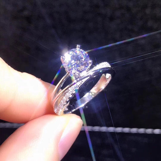 Platinum Plated Silver Unique Moissanite Ring 1ct or 0.5ct