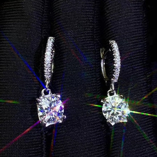 White Gold Plated Silver Drop Moissanite Earrings 1ctw - 2ctw Options