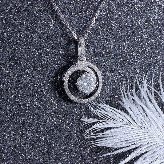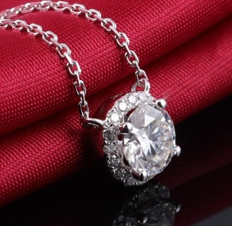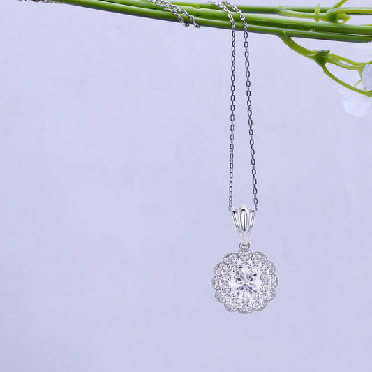 18k White Gold Halo Moissanite Necklace / Pendant 1ct Center Stone