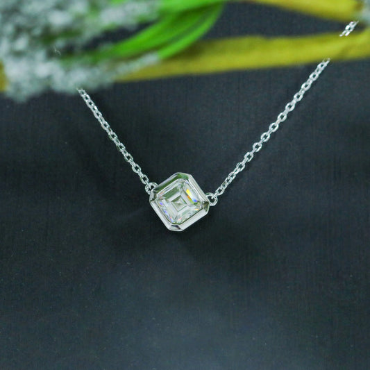 14k White Gold Asscher Cut / Asscher Necklace Moissanite 1ct