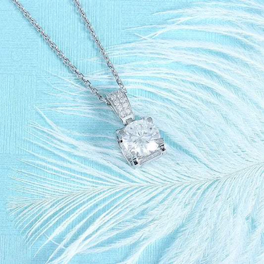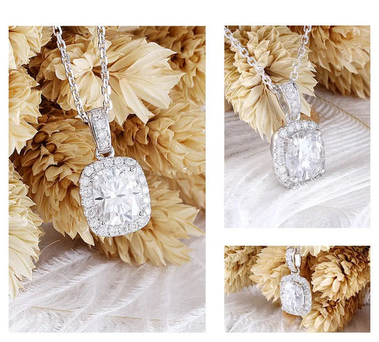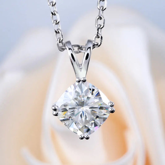 14k White Gold Moissanite Cool Necklace Cushion Cut 1ct & 2ct Options