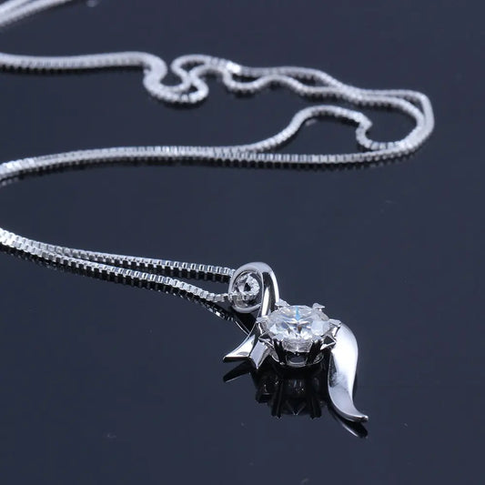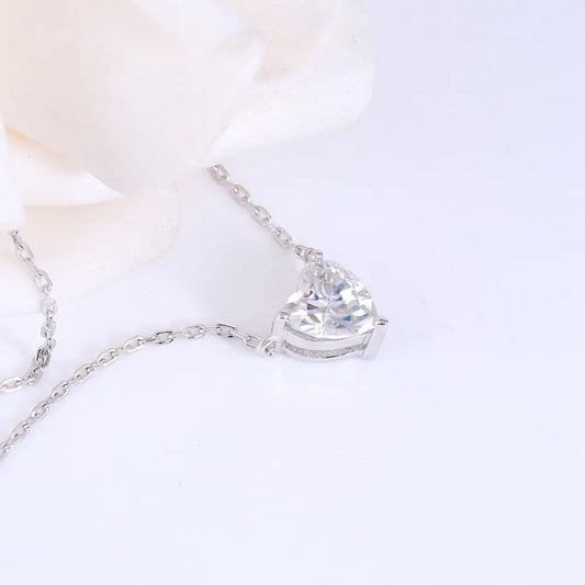 14k White Gold Heart Shaped Necklace Moissanite 1ct