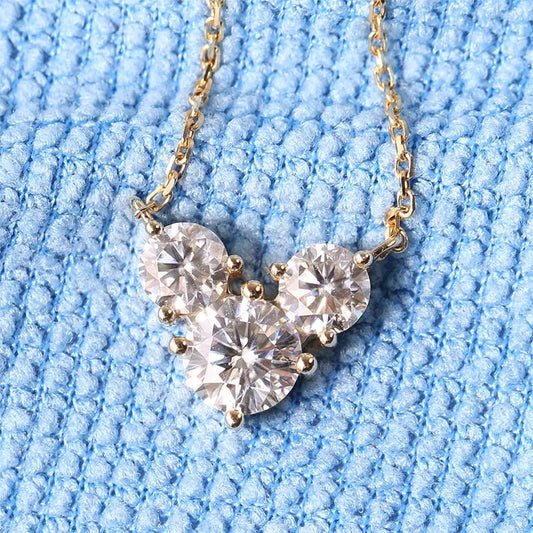 18k Yellow Gold 3 Stone Moissanite Necklace for Women Long 2ct Total