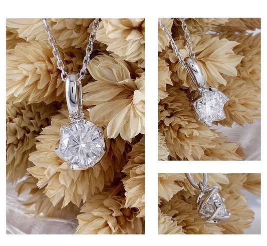 Silver, Yellow, or Rose Gold 10k, 14k, 18k Flower Moissanite Necklace 0.5 ctw | Pretty Necklace for Girlfriend