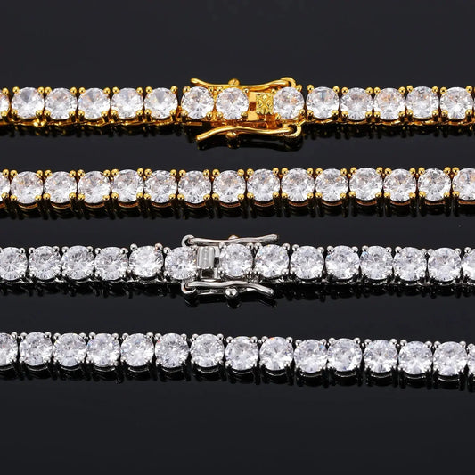 18K YELLOW GOLD PLATED MOISSANITE TENNIS NECKLACE 18inch, 6mm stones