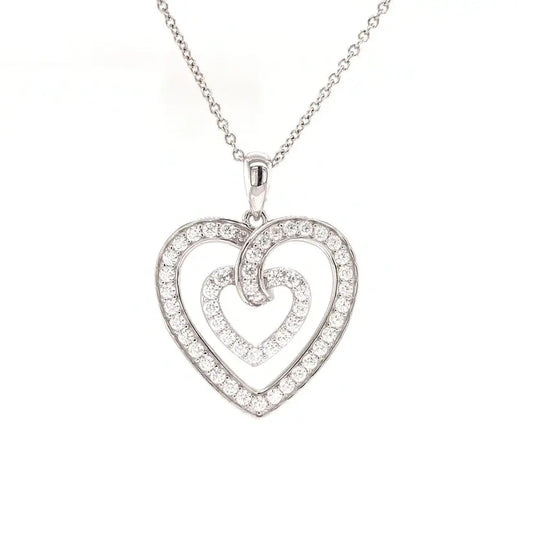 PLATINUM PLATED SILVER LOVE HEART PENDANT W/FULL MOISSANITE STONE AND POETRY CARD