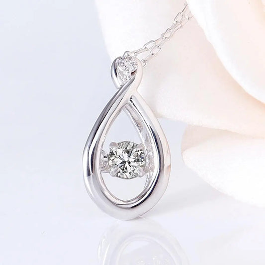 14k White Gold Dancing Stone Necklace Moissanite 0.11ct Center Stone