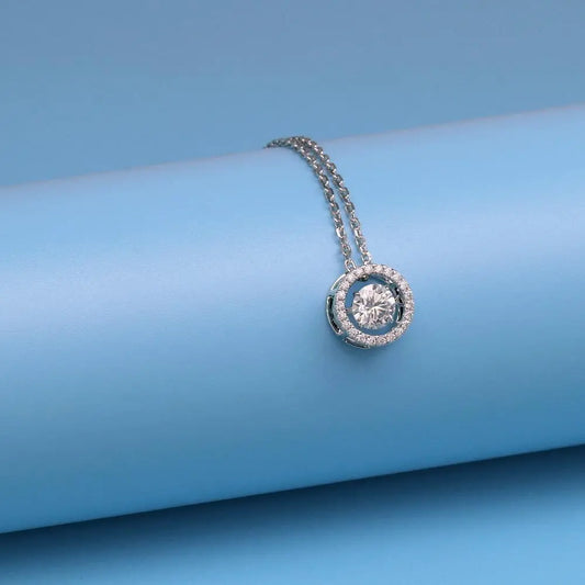 14k White Gold Halo Floating / Dancing Moissanite Necklace 1ct Center Stone