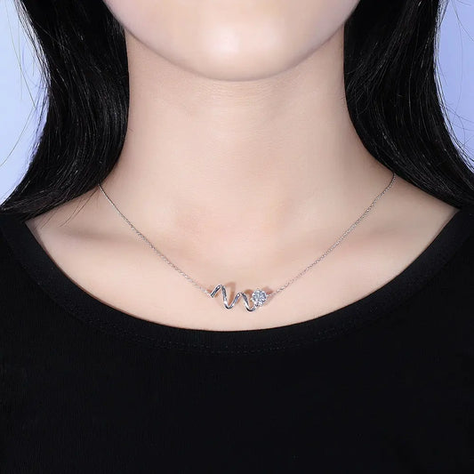 14k White Gold Wavy Necklace Moissanite 1ct