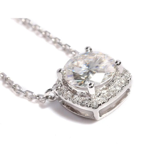 18k White Gold Moissanite Halo Pendant Necklace 1ct Center Stone