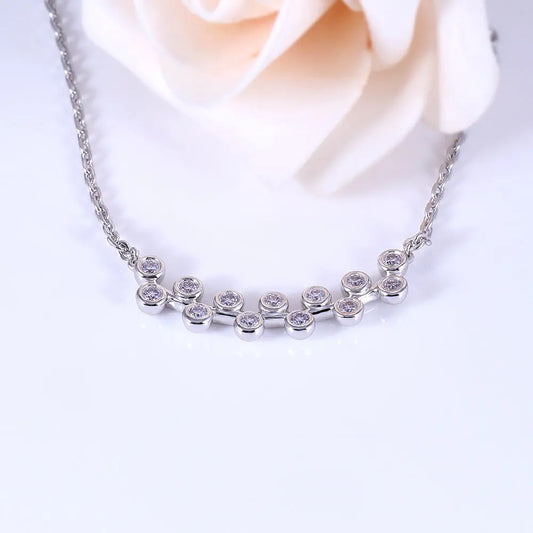 Platinum Plated Silver Circle Moissanite 5 Stone Necklace