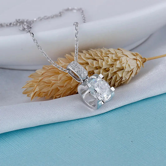 Moissanite Stone Best Necklace Platinum Plated Silver 1ct