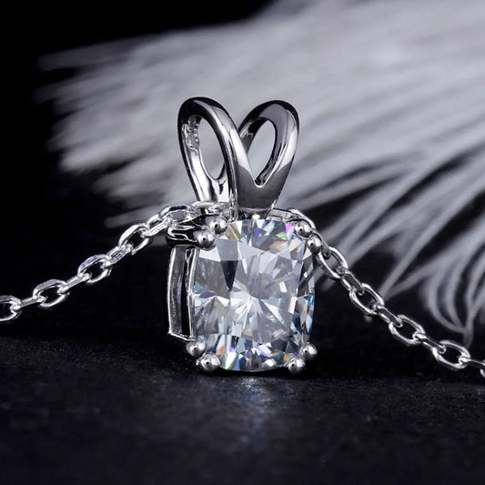Moissanite Bow Necklace Platinum Plated Silver