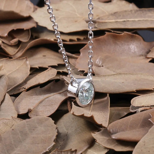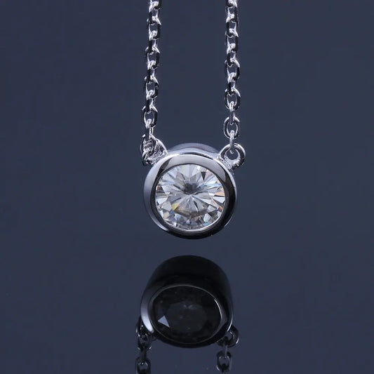 Platinum Plated Silver Bezel Set Moissanite Necklace 1ct