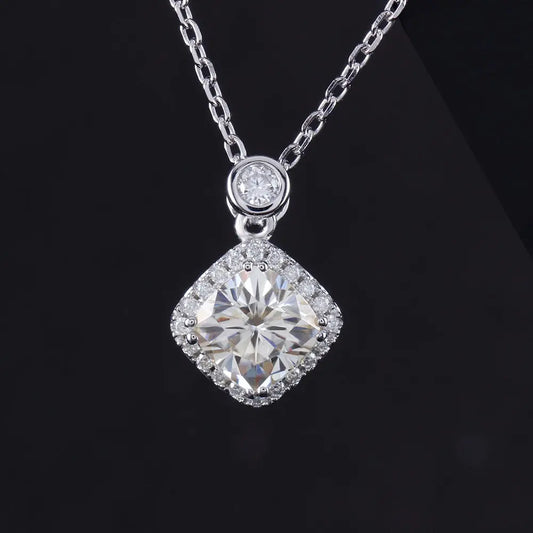 Platinum Plated Silver Moissanite Halo Necklace / Pendant 2ct Total