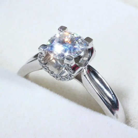 14k White Gold Moissanite Ring 1ct Center Stone - Unique Engagement Rings Near Me