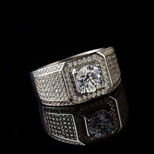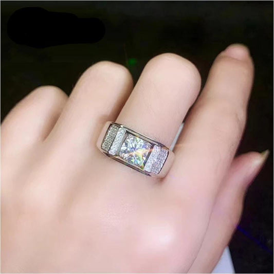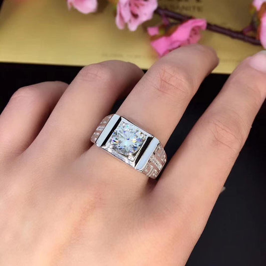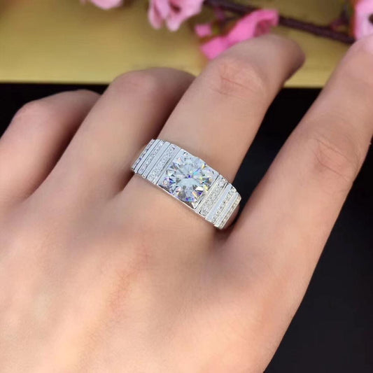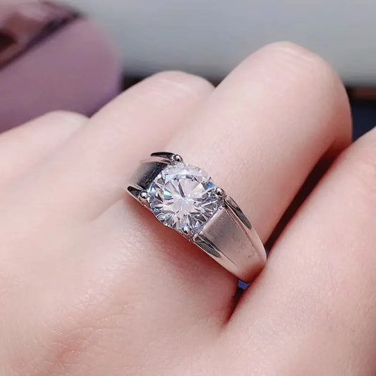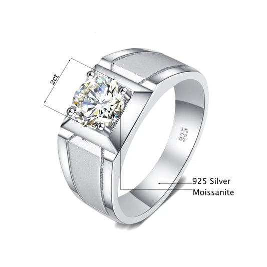 Silver Men's Moissanite Engagement Ring For Man 1 - 3ct Center Stone