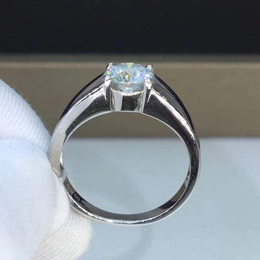 Silver Men's Moissanite Engagement Ring 1ct Center Stone / Silver Mens Rings