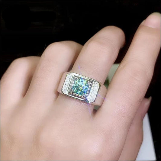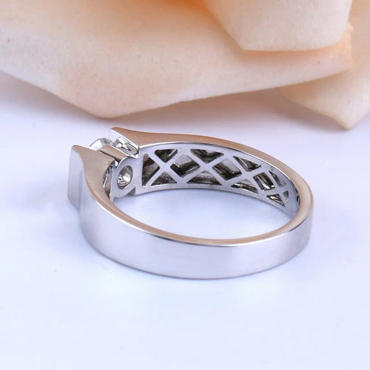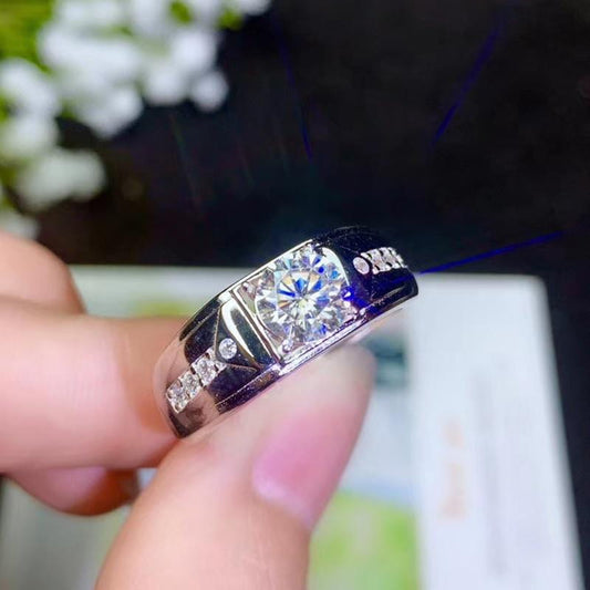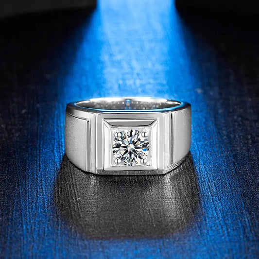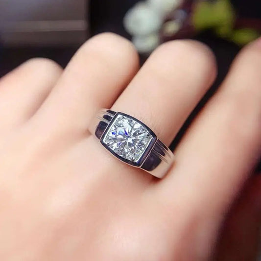 Silver Men's Moissanite Engagement Ring 1ct Center Stone / Silver Mens Rings
