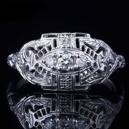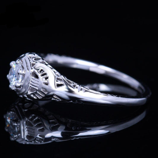 White Gold Plated Silver Vintage Moissanite Ring 0.3ct