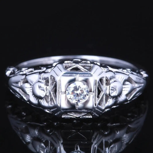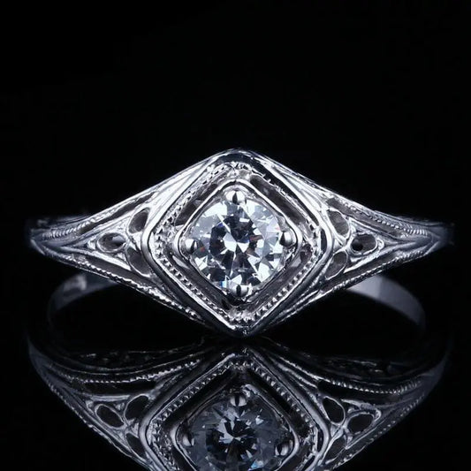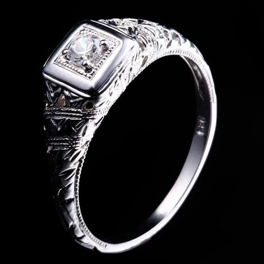 10k White Gold Vintage / Unique Moissanite Ring 0.1ct / Wedding Ring Vintage