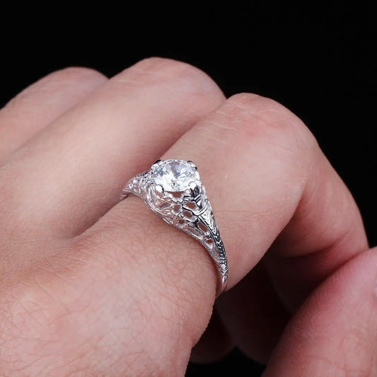 10k White Gold Vintage / Unique Moissanite Ring 0.1ct / Engagement Rings Female Collection