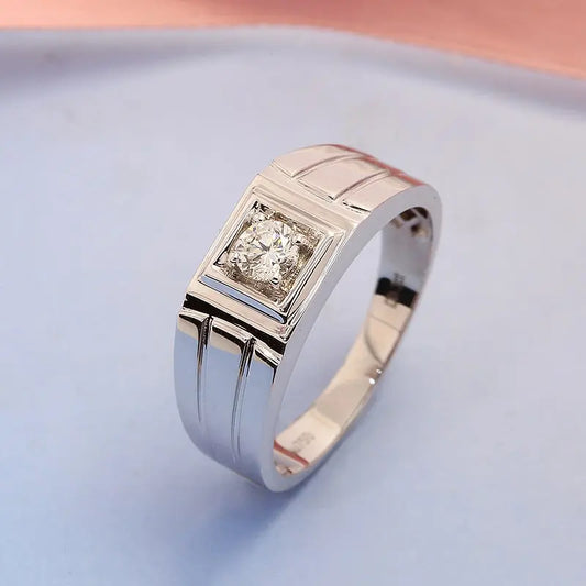 14k White Gold Plated Men's Moissanite Engagement Ring 0.5ct Center Stone