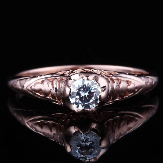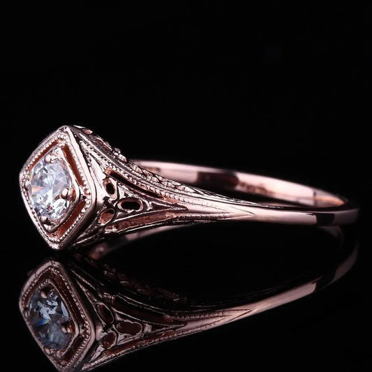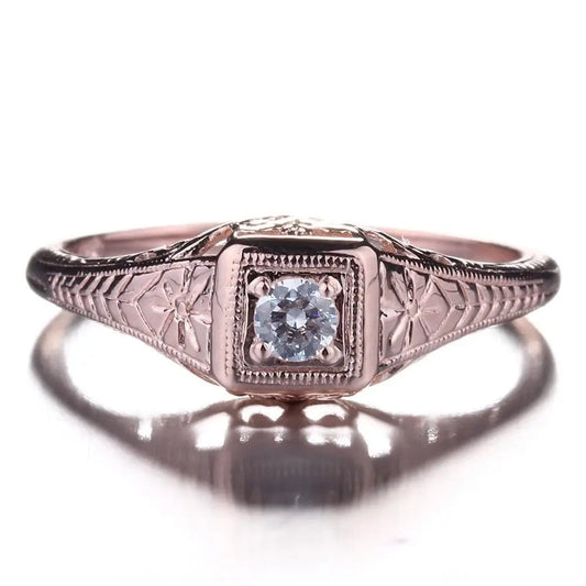 14k Rose Gold Vintage / Unique Moissanite Ring 0.1ct / Vintage Wedding Ring