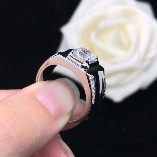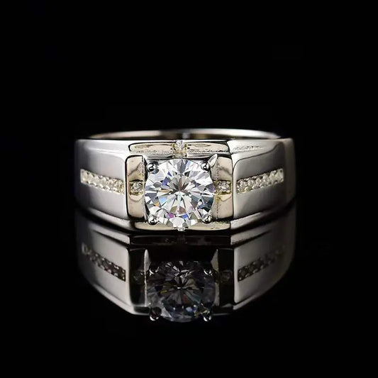Silver Men's Moissanite Engagement Ring For Him 1 - 3ct Center Stone