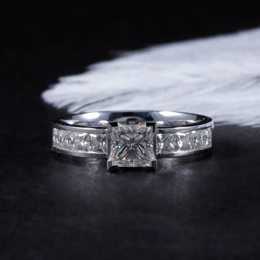 14k White Gold Princess Cut Engagement Ring With Moissanite 1.5ct Total