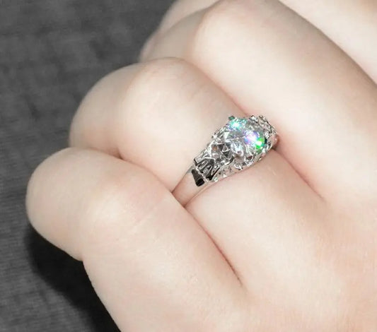 10k White Gold Vintage / Unique Moissanite Ring 0.6ct - Wedding Rings Vintage