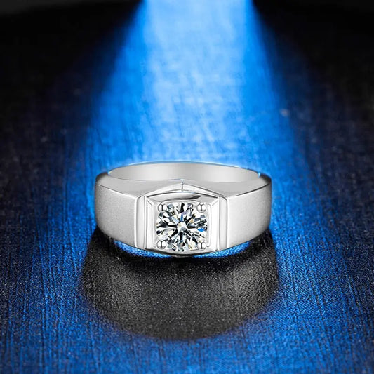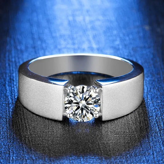 Silver Men's Moissanite Engagement Ring 1ct Center Stone / Silver Mens Engagement Rings