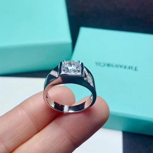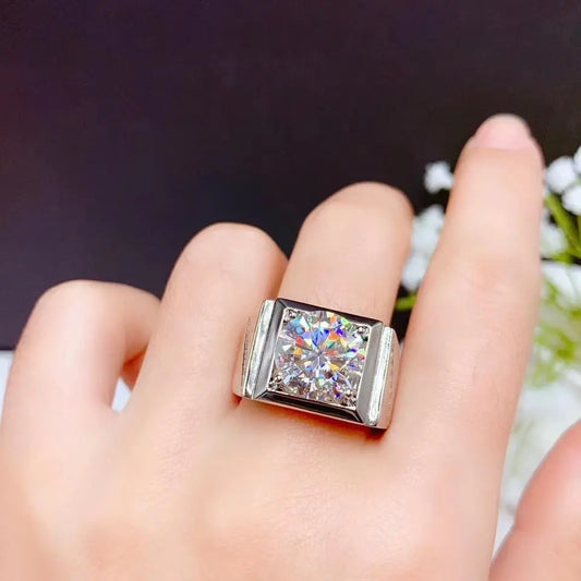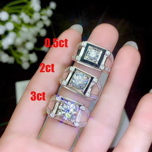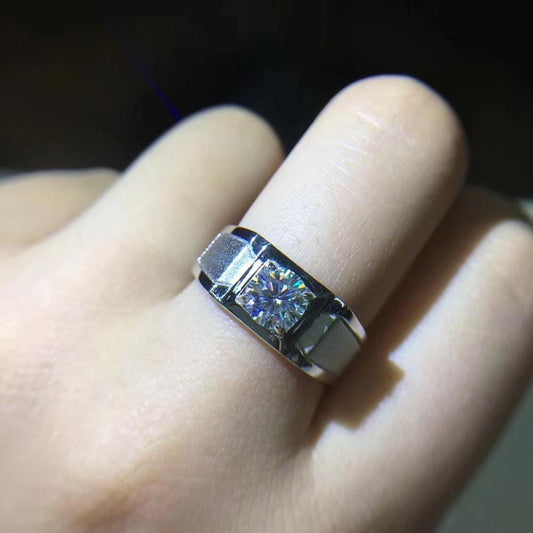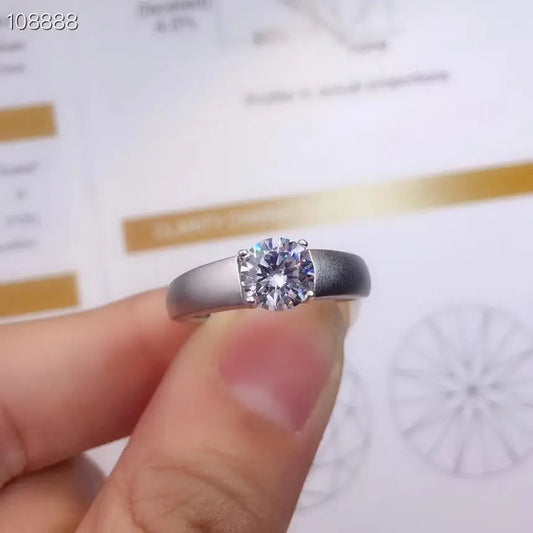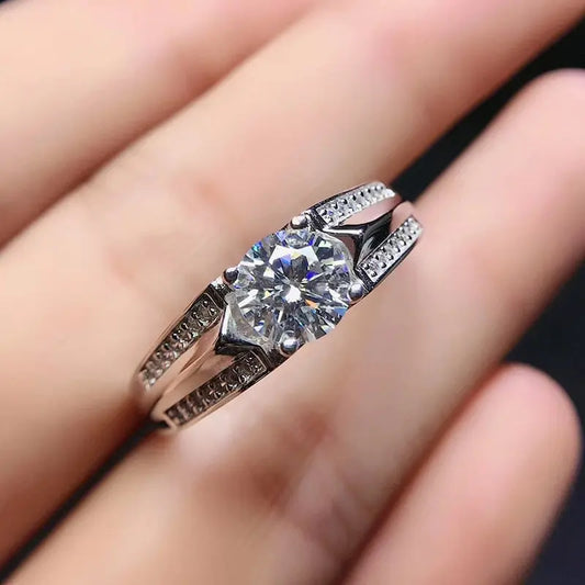 Platinum Plated Silver Wide Moissanite Ring 0.5ct - 2ct Options