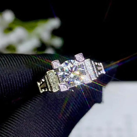 White Gold Plated Silver Vintage Moissanite Ring 1ct Center Stone / Nice Engagement Ring Brands