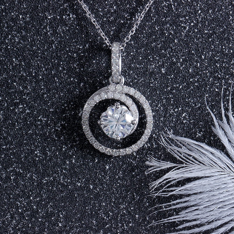 14k White Gold Jewelry Collection - 14k White Gold Moissanite Necklace / Pendant 1ct Center Stone