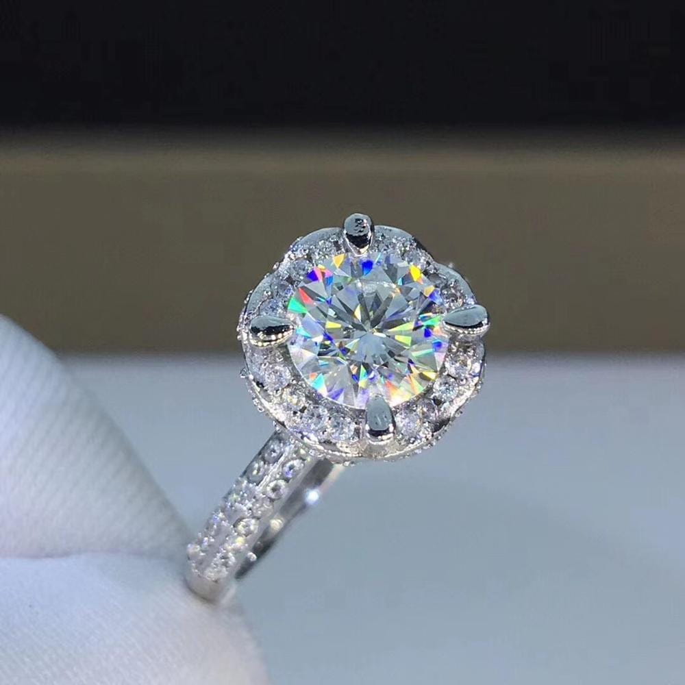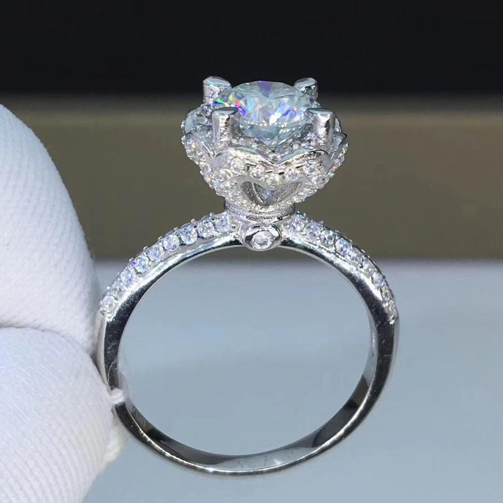 Moissanite Stone: The center stone is 0.8ct (6mm) or 1 carat (6.5mm). It also has additional surrounding moissanite stones.