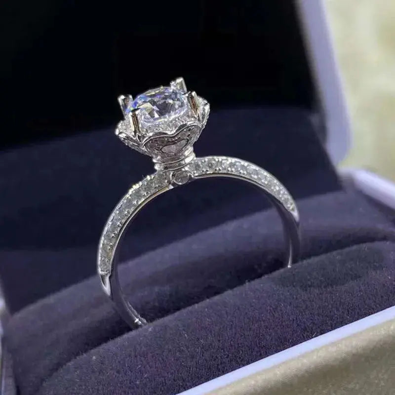 Platinum Plated Silver Vintage Moissanite Ring 0.8ct & 1ct Options