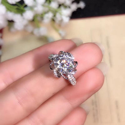 - Premium Moissanite Stones: The center stone in these Moissanite Engagement Rings is available in your choice of 1ct (6.5mm), 2ct (8mm), or 3ct (9mm), providing a dazzling focal point that catches the light from every angle. Each stone is carefully selected for its DEF colorless grade and FL-VVS1 clarity, ensuring incredible brilliance and fire. Surrounding the center stone, smaller moissanite stones add extra sparkle, creating a breathtaking halo effect.