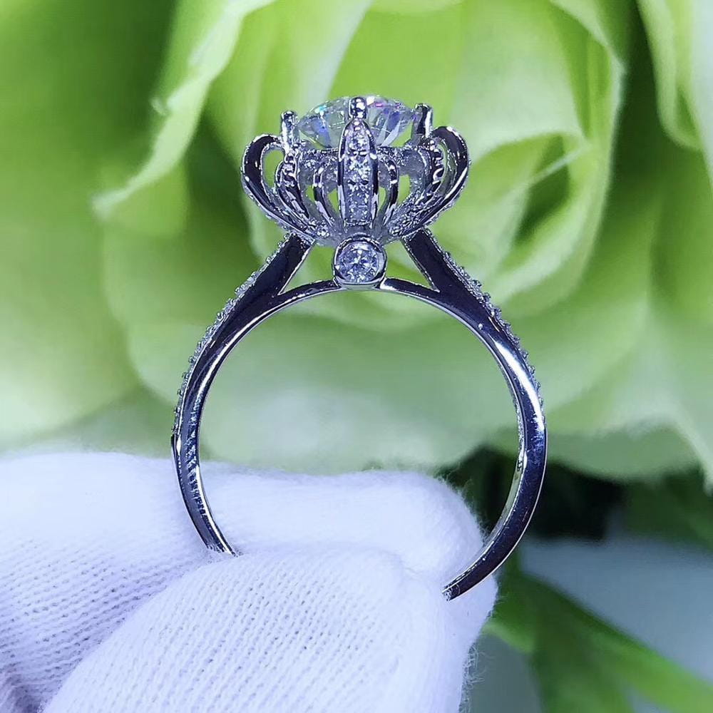 Moissanite Stone: The round center stone comes in 1 carat (6.5mm) or 0.8ct (6mm). It also has additional surrounding moissanite stones as well as moissanite stones all over the silver band.